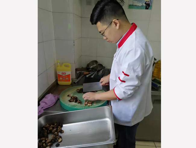 图为:为老人们精心准备食材加工