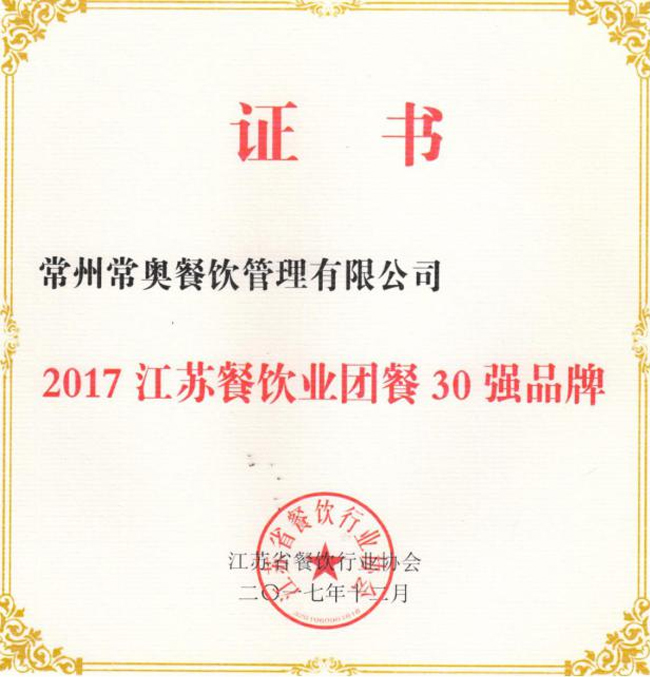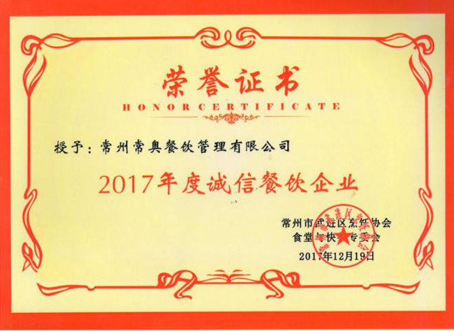 由武进烹饪协会在江苏武进举办的“2017年常州市武进区烹饪协会食堂与快餐专委会年会”中我公司荣获“2017年度诚信餐饮企业”!