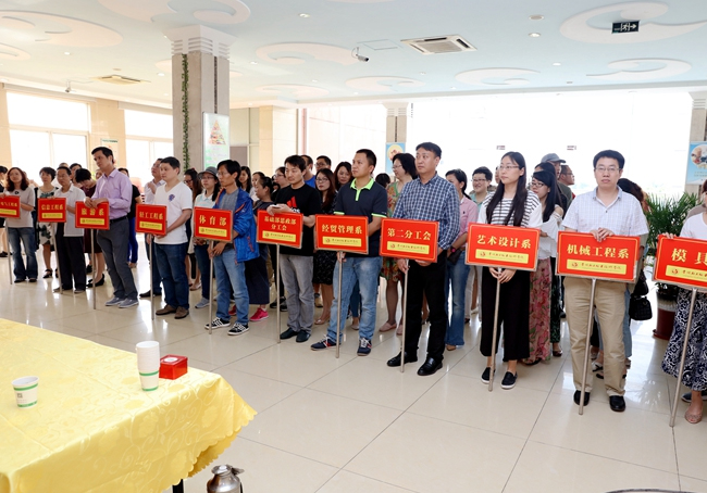 后管处副处长林伟为大家宣读比赛规则,工会副主席管卫中宣布比赛开始后,60余名男女教职工开始包各种各样的具有各地特色的粽子,如四角粽子、方粽、小脚粽子等。最后,评委老师根据粽子的外观、紧密程度、大小重量等比赛规则,评选出了前三名的团队:机关二分工会获得一等奖,机械工程系分工会获得二等奖,经贸管理系分工会获得三等奖。