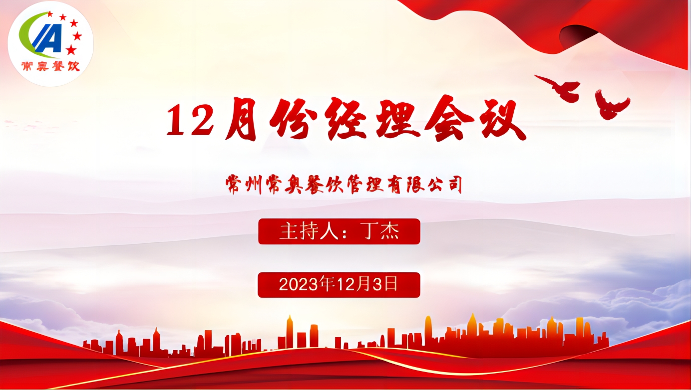 2023年12月3日下午,我公司在总部会议室召开了12月份经理会议,本次会议由总经理丁杰主持,各项目经理、区域经理、考核部及高层管理人员参加了此次会议。本次会议旨在总结10月、11月份的工作成果,分析存在的问题,并对12月份的工作计划进行全面部署。