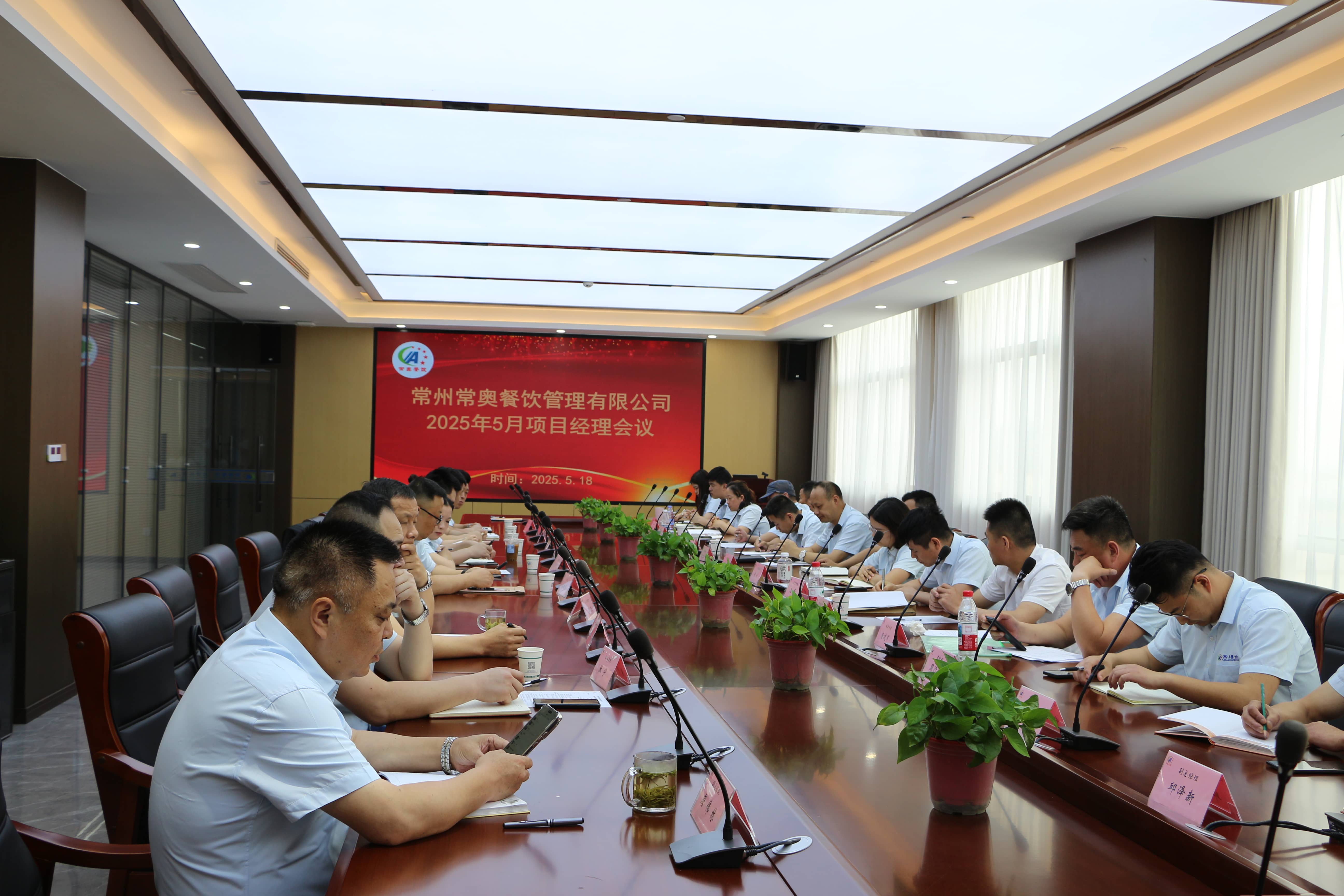 5月18日在常州常奥餐饮有限公司总部七楼会议室召开了5月份项目经理会议。本次会议参与人员:董事长丁仁扣、董事丁志刚、总经理丁杰以及区域负责人、考核部负责人、各个项目经理人员等30多人。此次会议的议题主要是对四月份工作的一个总结以及对五月份的规划与安排。尤其对于项目上各档口的稳定经营的安排与举措。